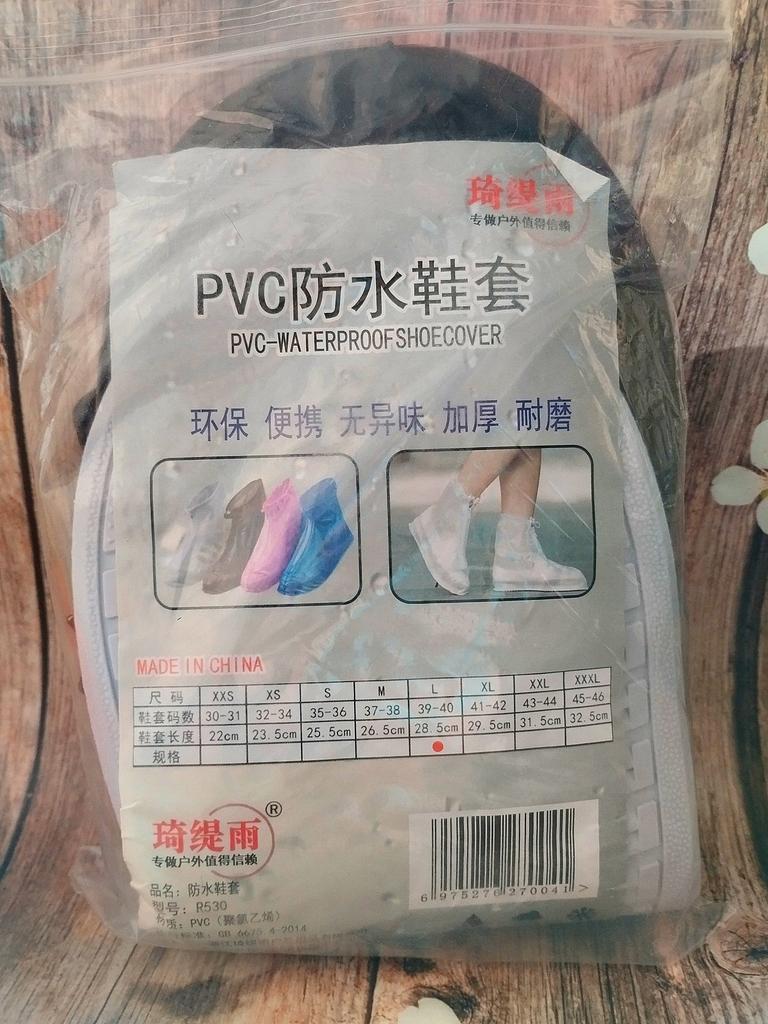 Бахилы уличные размер 39-40 цвет белый, задумка хорошая, думала гулять с собакой в дождь, ходить по траве что бы обувь не мочить, но не подошли. Длина моей стопы 24,5, длина стопы в тапке 26 см, а длина подошвы бахила 27,5 см, то есть на 1,5 см велики, плюс к тому же они очень широкие нога в них просто болтается во все стороны, застежка молния, с верху затяжка тонкая резинка которая неприятно врезается в кожу и еще они короткие, а это плохо тем что дождь всё-таки попадает через резинку во внутрь и как результат ноги внутри все равно мокрые, а еще они не красиво смотрятся на ноге, цепляются носками за асфальт и смешно шаркают, так что лучше резиновых сапог и галош наверное еще ничего не придумали, но возможно было бы не плохо если бы они были высокие по колено и на молнии, надеюсь мой отзыв Вам поможет.