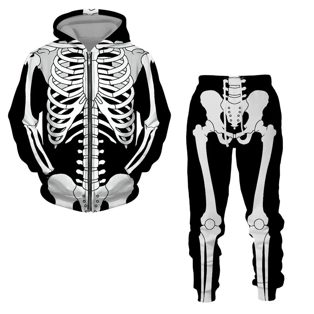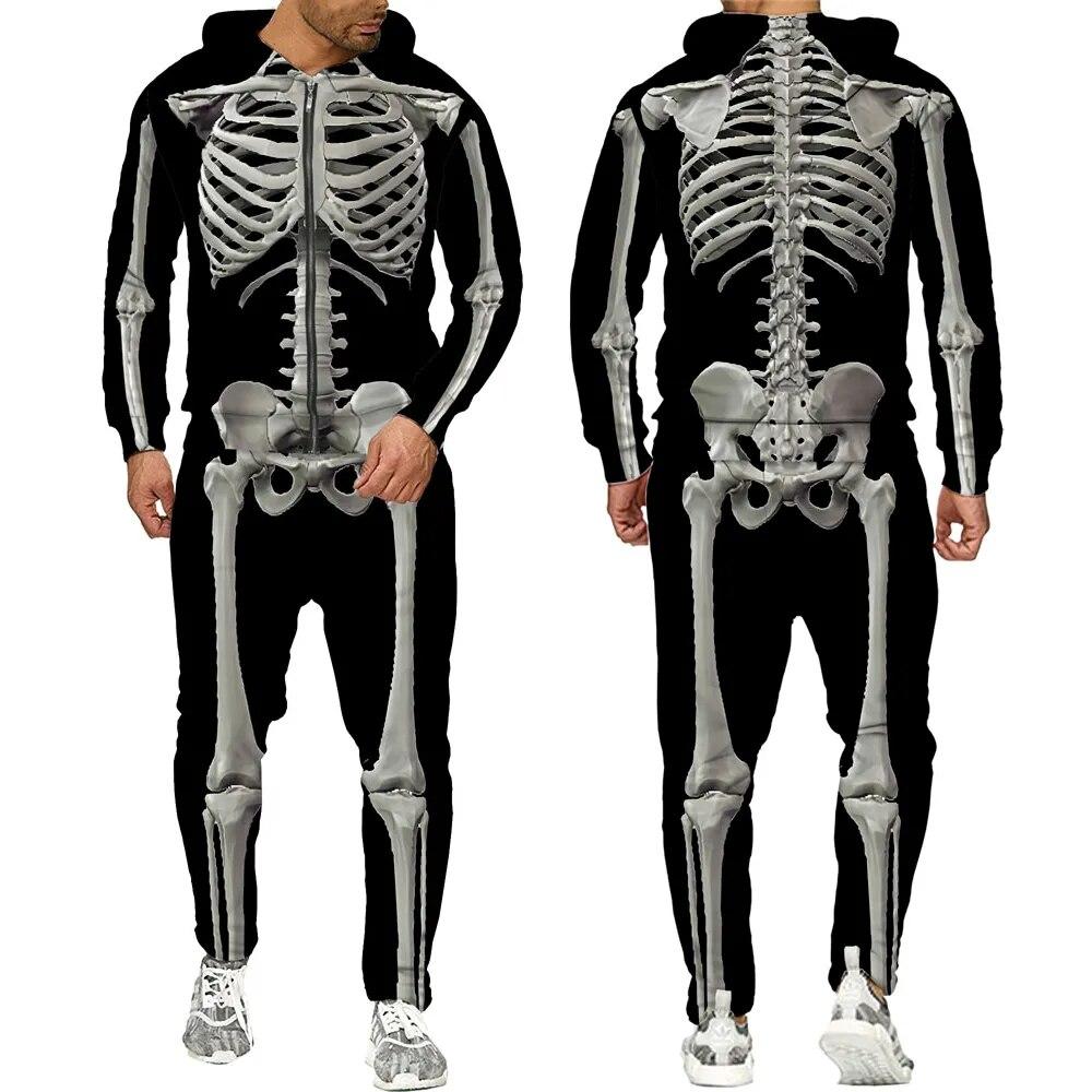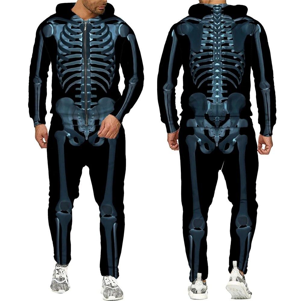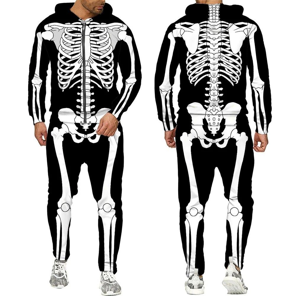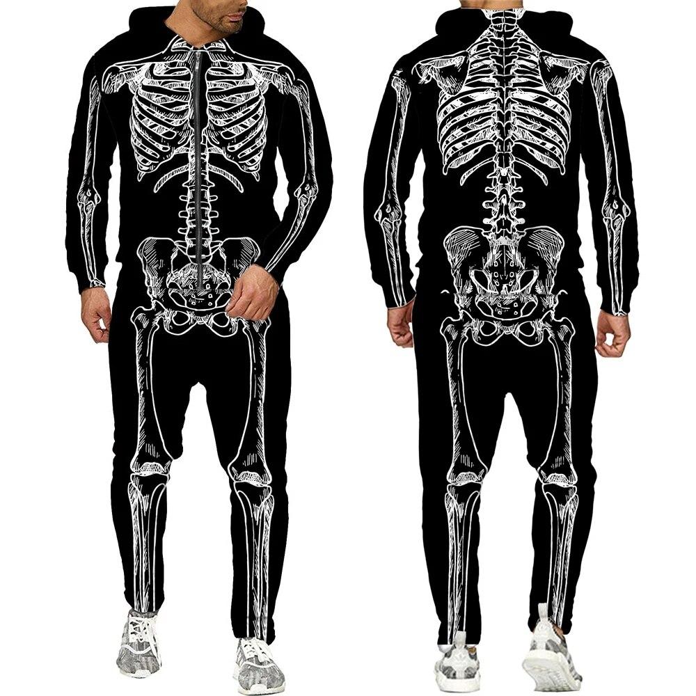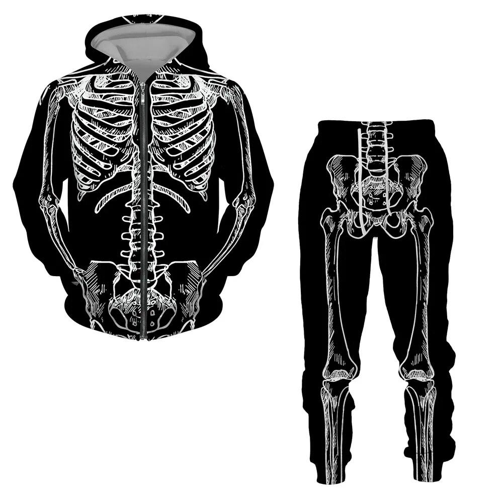 Хэллоуин косплей скелет Splanchna 3D принт на молнии спортивные костюмы мужские брюки с капюшоном комплект из 2 предметов уличная одежда костюмы