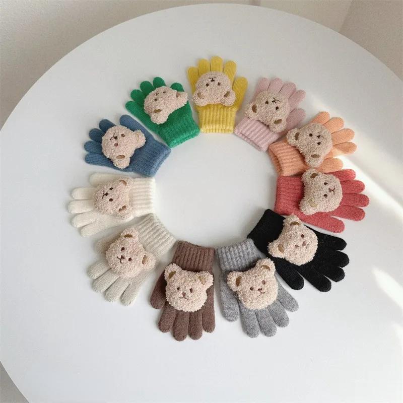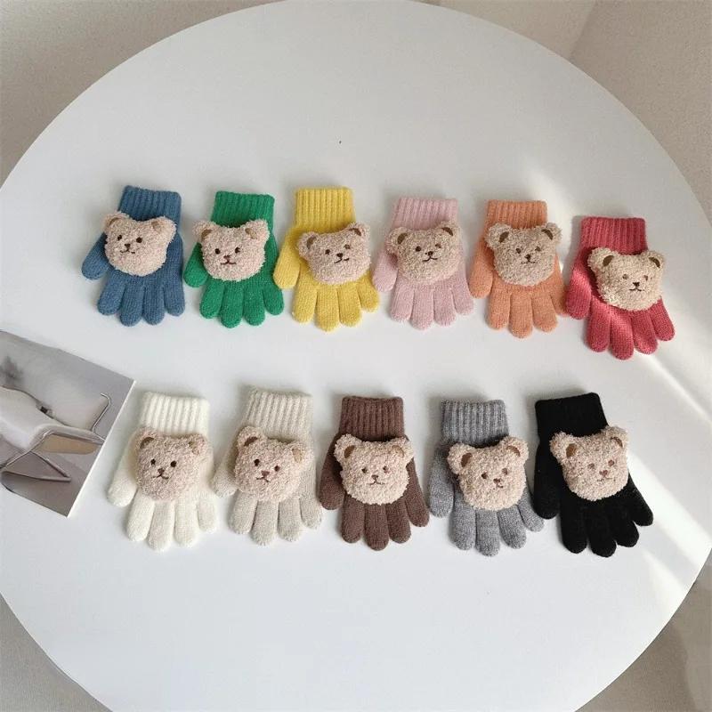 1 пара теплых перчаток для маленьких мальчиков и девочек, милые модные перчатки с мультяшной куклой и медведем для маленьких мальчиков и девочек, милые осенне-зимние теплые детские перчатки