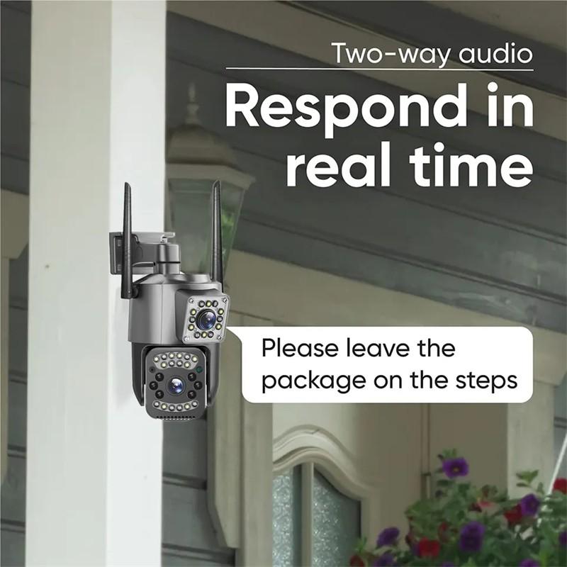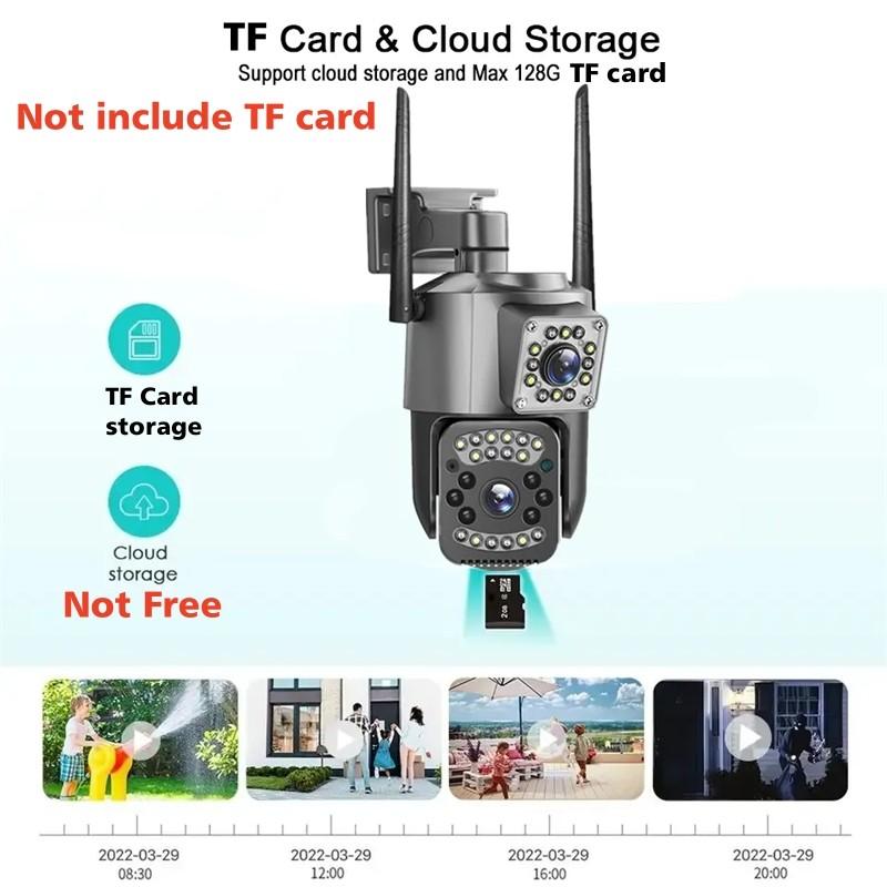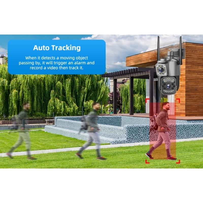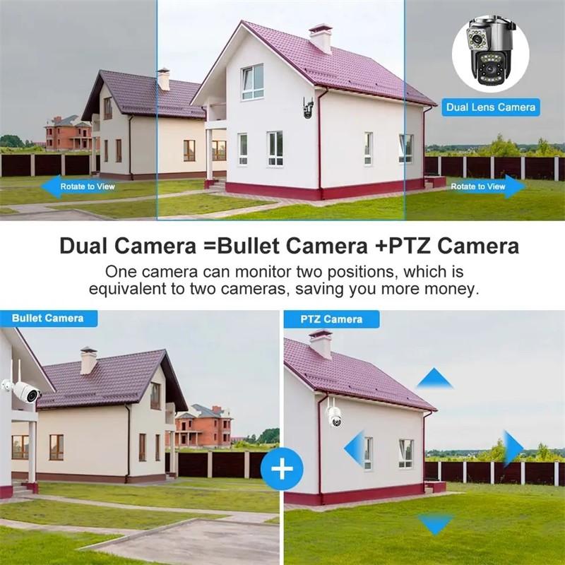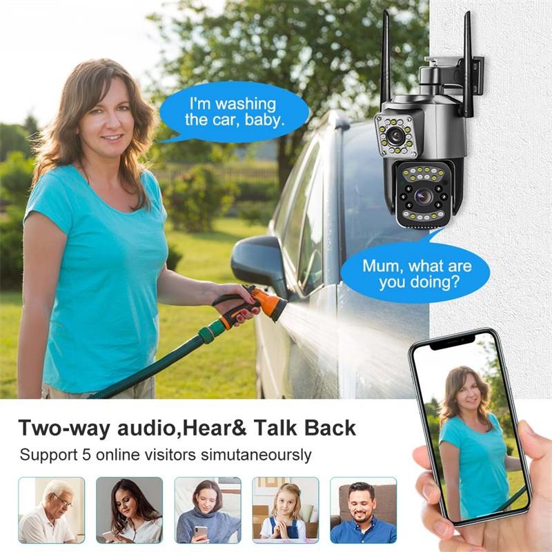 Двойной объектив, две камеры, панорамное наблюдение, полноцветное ночное видение, домашняя камера видеонаблюдения, поддержка двустороннего аудио, обнаружение движения