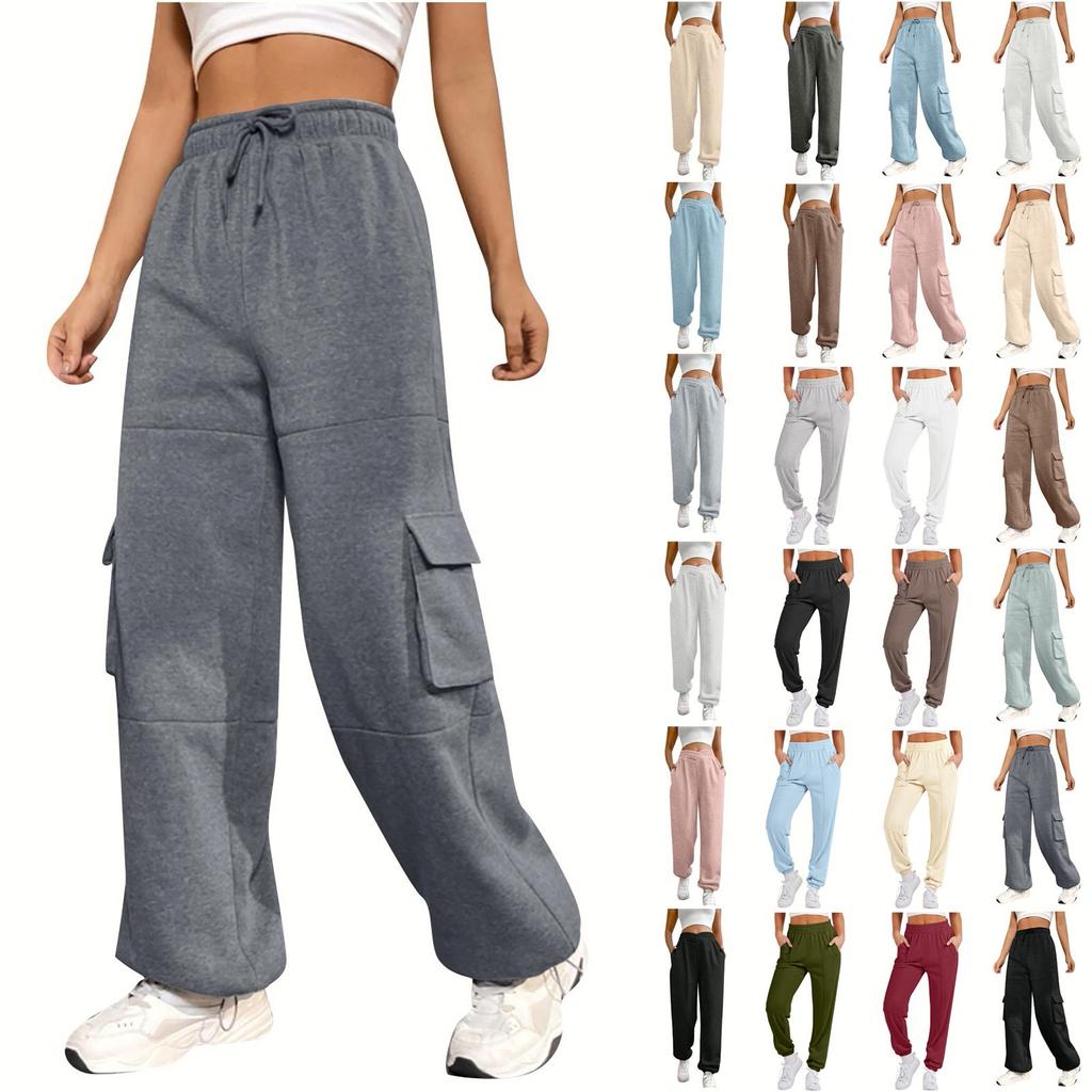 Женские базовые спортивные брюки с эластичной резинкой на талии и несколькими карманами, спортивные прямые брюки