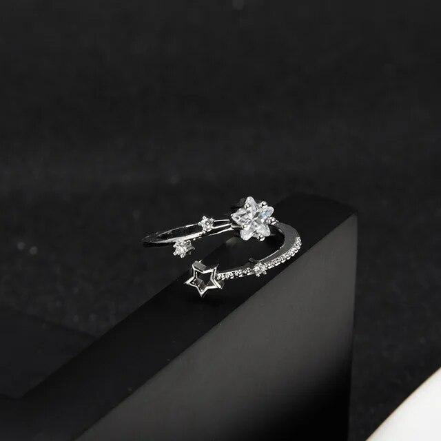 Корейские серебряные кольца с пятиконечной звездой для женщин, простые регулируемые кольца с крестом и цирконием, ювелирные изделия, подарок на вечеринку