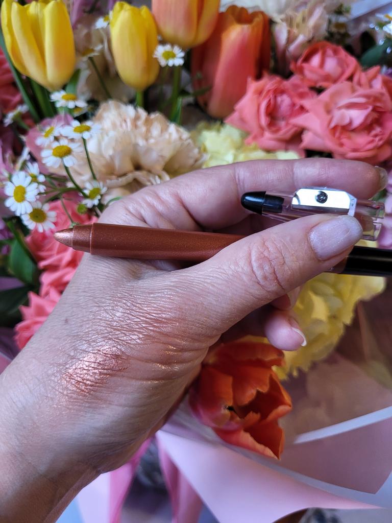 Серебристые тени для век✨️ Удобный карандаш с точилкой! Несомненный плюс, ведь ее не нужно подбирать отдельно. Все компактно и функционально. Карандаш мягкий, стержень серебряный, не тонкий, мягко ложится и хорошо прокрашивает веко. Дополнительно его можно растушевать. Я выбрала карандаш с оттенком номер 01. Мне понравился☺️ Смотрите небольшое видео) Рекомендую❣️ Цветов много и очень красивых)