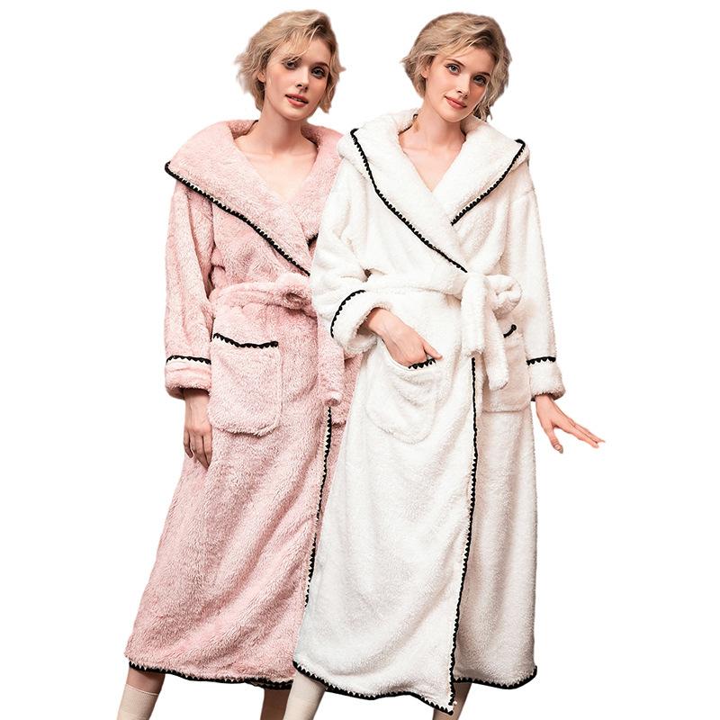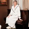 Женский фланелевой ультрадлинный халат с v-образным вырезом. Благородный и элегантный теплый халат с двойным карманом. Свободная и мягкая домашняя одежда для сна.