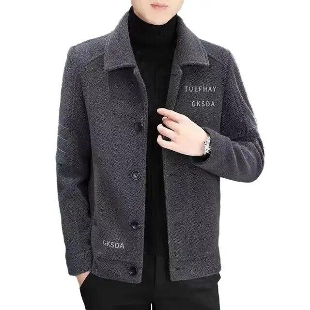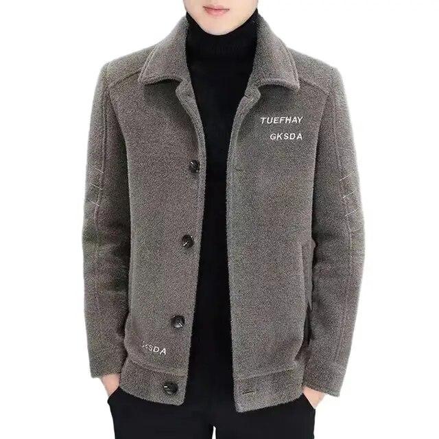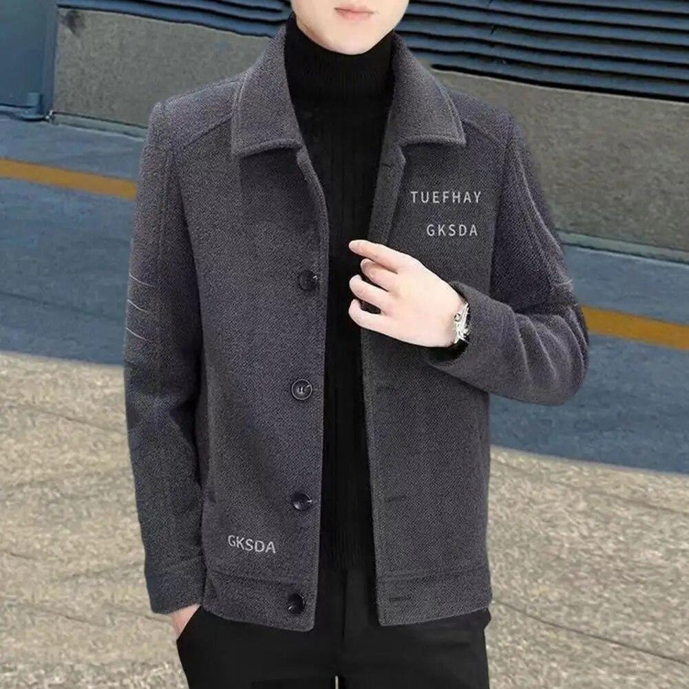 Мужская осенне-зимняя куртка с лацканами и длинными рукавами, однобортное плюшевое пальто с вышивкой и буквенным принтом, утепленная теплая верхняя одежда