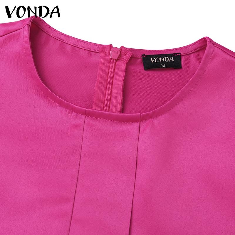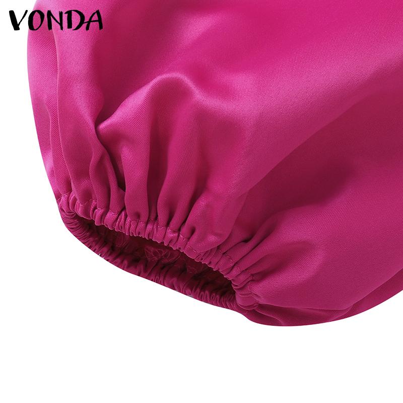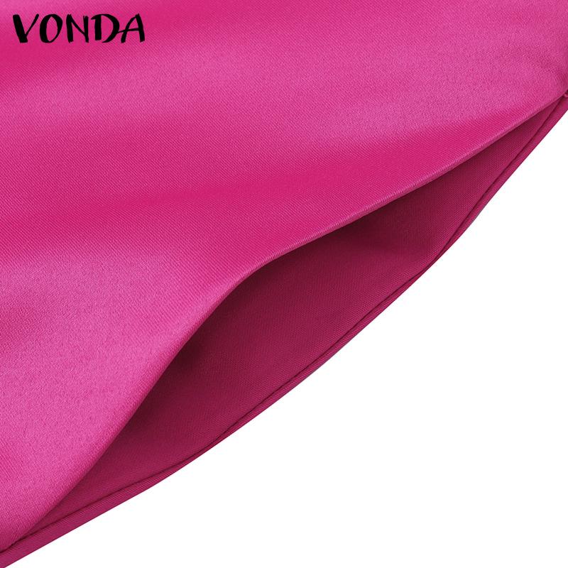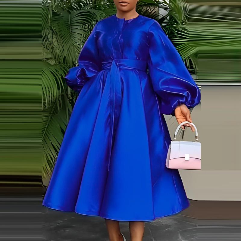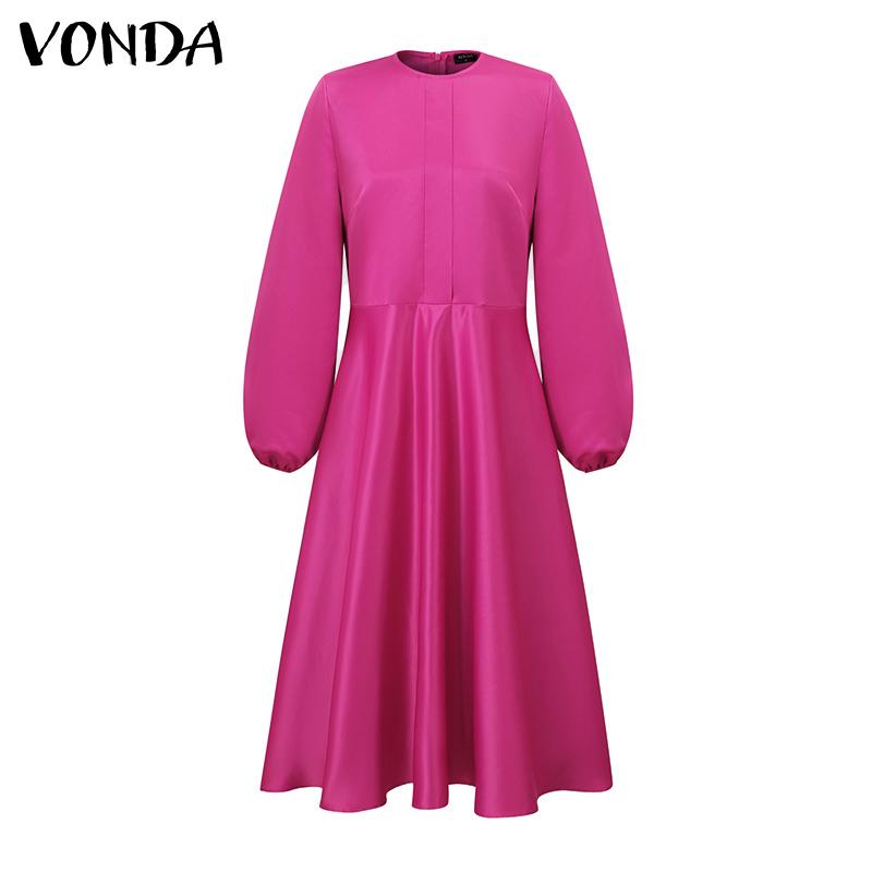 VONDA Женские большие размеры с круглым вырезом и длинным рукавом с поясом и карманами, свадебные атласные однотонные платья миди