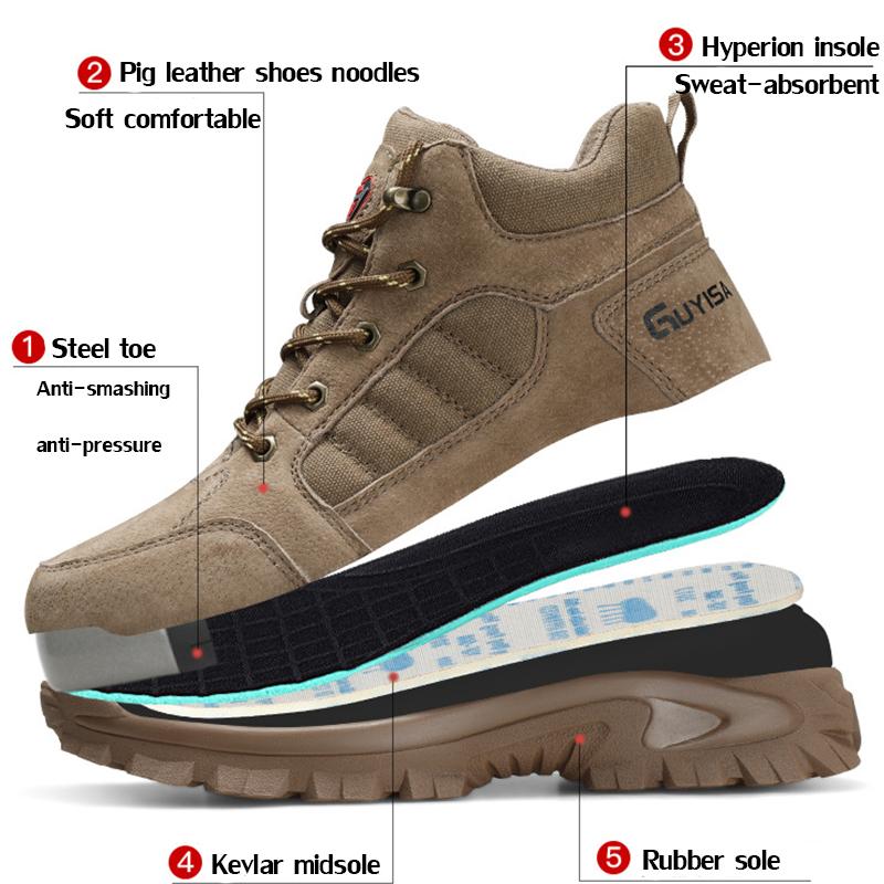 Мужская обувь по страхованию труда. Защита лодыжки с высоким берцем. Противоударная и противопрокалывающая рабочая обувь. Удобная и мягкая защитная обувь.