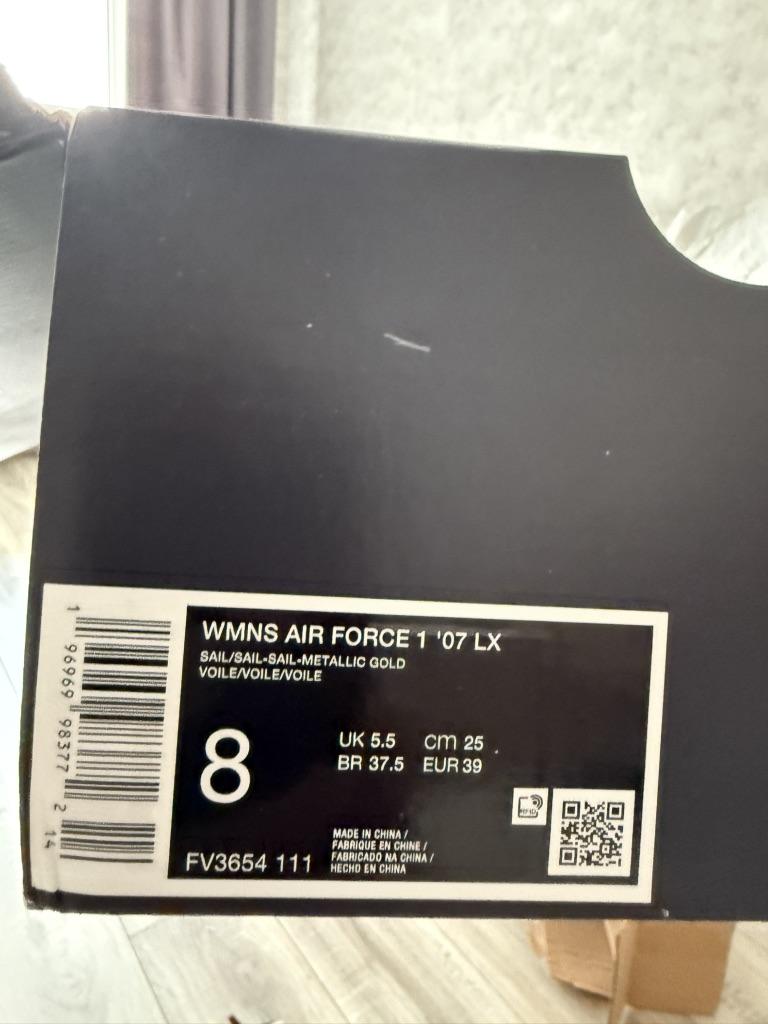 Nike Air Force 1 07 LX Mini Swoosh — женские кроссовки цвета металлик, золото, белый парус FV3654-111