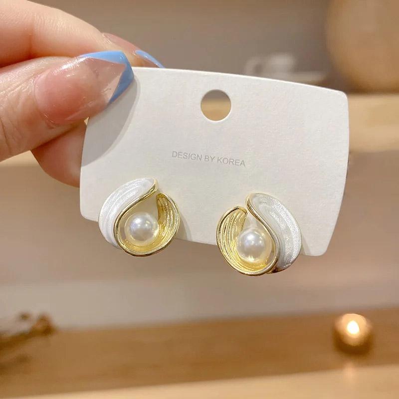 Серьги-гвоздики с белой эмалью и жемчугом, винтажные серьги французского дизайна, необычные серьги для женщин, корейские модные украшения для ушей