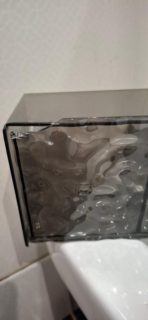 Красивый, но пришёл разбитый, сверху уголок оторвался и подвижная часть не держит, тоже с одной стороны малюсенький держатель оторвался и поэтому выдвижную часть не держит.