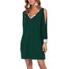 Женское платье с V-образным вырезом и открытыми плечами, блестящая сетка с пайетками в тон, длина выше колена, свободный пуловер, лоскутное женское мини-платье для поездок на работу