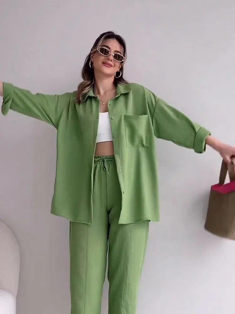 Модный комплект брюк, женские рубашки с длинными рукавами, женский костюм с лацканами, лето 2023, брюки с высокой талией, модные женские костюмы из 2 предметов с завязками — купить товар онлайн с бесплатной доставкой по всему миру!