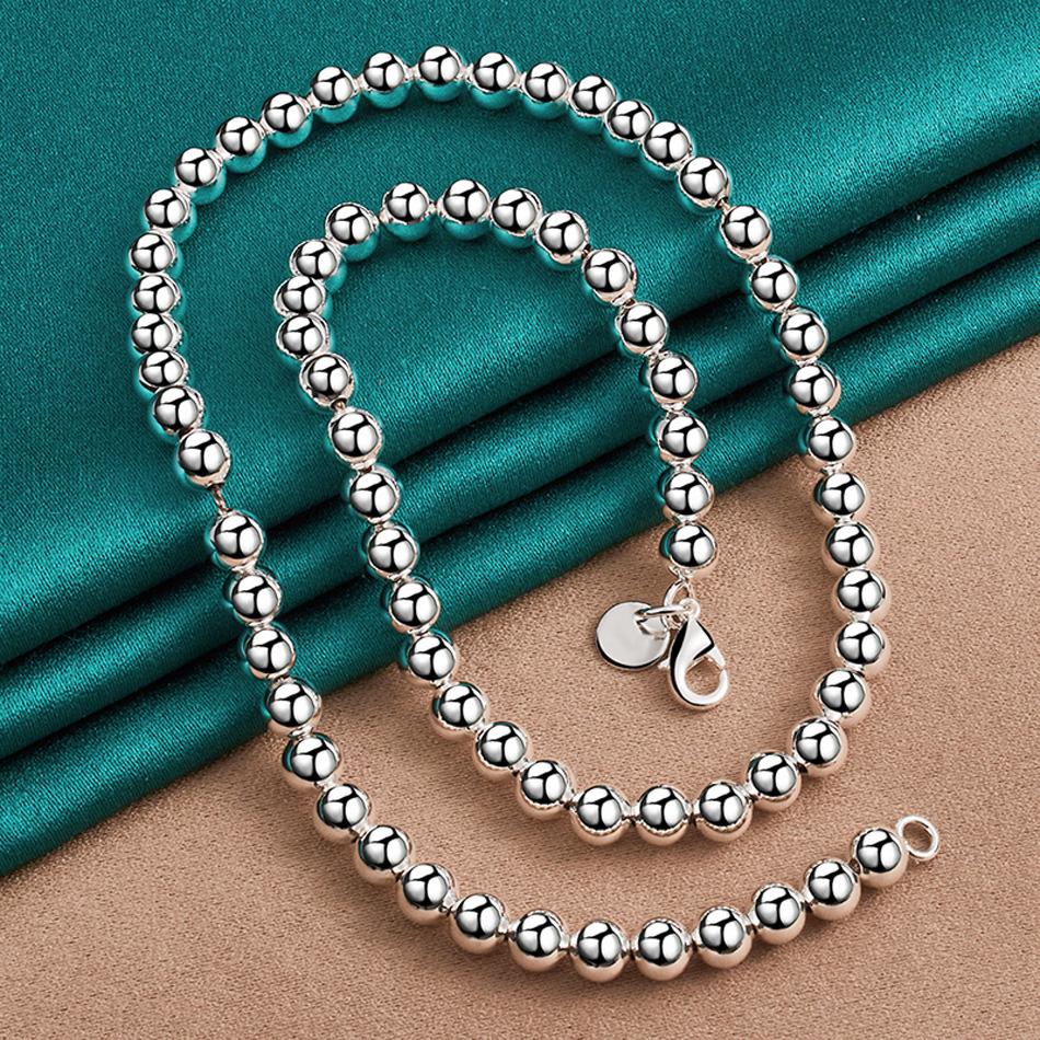 Ожерелье из стерлингового серебра 925 пробы с круглыми бусинами диаметром 6 мм для мужчин и женщин, вечерние свадебные модные украшения