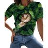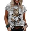 Новая женская футболка, летняя женская футболка с круглым вырезом и 3D принтом милого кота, кавайная свободная футболка с коротким рукавом