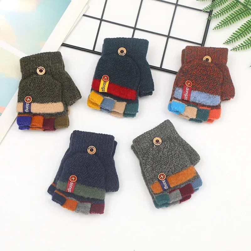 Детские перчатки с половиной пальца, жаккардовые цветные осенне-зимние теплые перчатки для детей, студенческие детские перчатки для письма