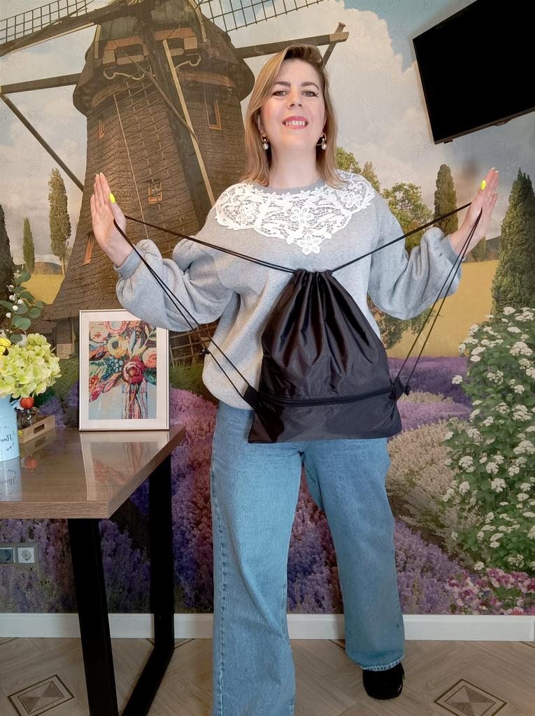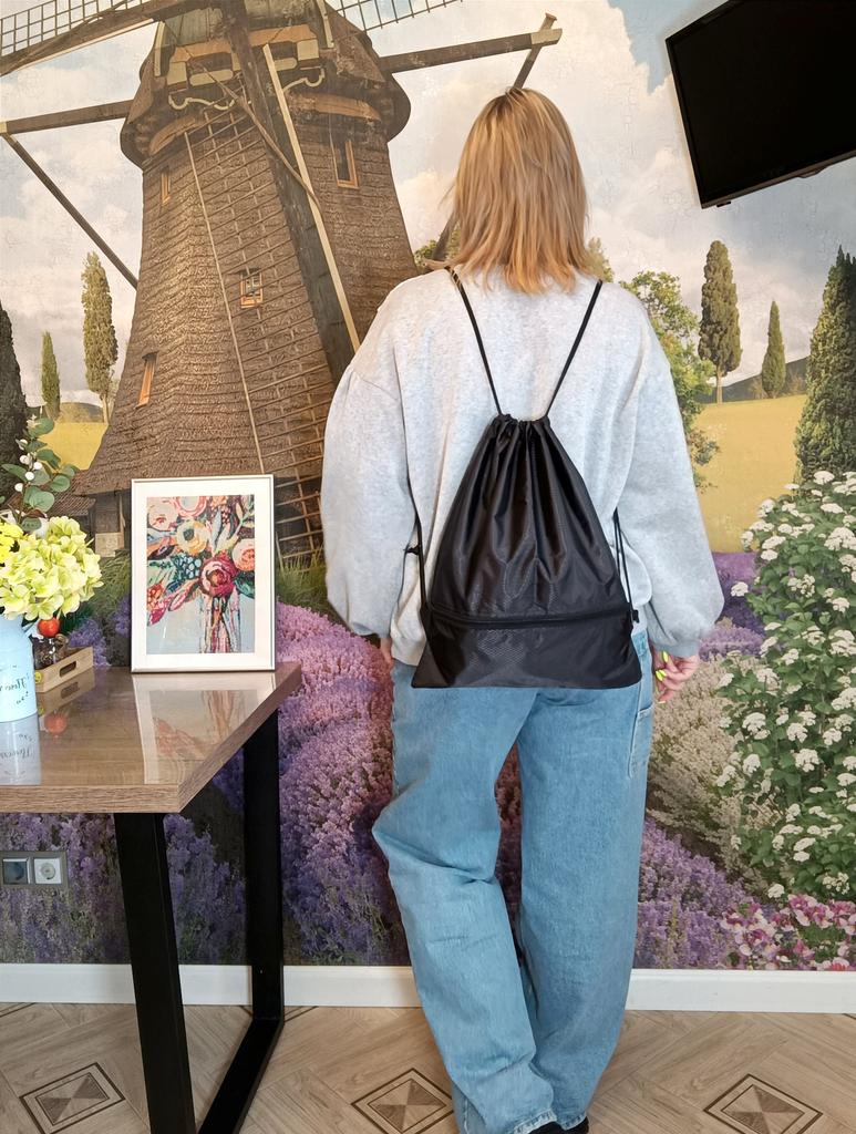 Мешок для сменной обуви, сумка для обуви с карманом. Мешок для сменной обуви – это универсальная сумка для обуви и одежды, которая станет идеальным спутником в любых жизненных ситуациях. Подойдет для хранения как на занятиях в спорт зале, так и на физкультурных уроках или в бассейне. Для школьников, активно посещающих кружки и секции, наш мешок для обуви станет незаменимым помощником, обеспечивая удобство и функциональность во время переодевания. Водонепроницаемая ткань и прочные шнурки делают мешок для обуви идеальным выбором не только для мужчин, но и для подростков и детей. Благодаря универсальному размеру 44,5х36,5 см, мешок для сменной обуви без труда вмещает в себя как спортивную обувь, так и сменную одежду, а двусторонняя стяжка шнурков обеспечивает надежное закрытие и защиту содержимого от непогоды и воды. Сшитый из качественной, плотной ткани с водоотталкивающей пропиткой, наш мешок для сменной обуви легко отстирывается и быстро сохнет, что делает уход за ним простым и удобным. Внутренние швы мешка закрыты тесьмой, обеспечивая дополнительную прочность и долговечность изделия