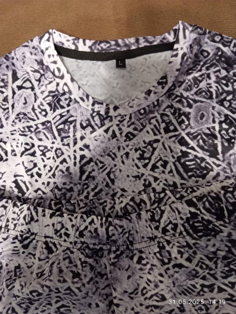 Хотелось бы для такой одежды на лето, больше натуральной ткани, дышащей, а тут сплошная, причём просвечивающая синтетика, лля жары очень не комфортно, будет прилипает, а рисунок красивый, пошито качественно!