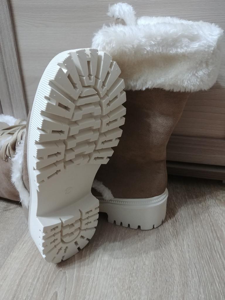 Брала ботинки без отзывов. И в результате не разочаровалась. Таблица продавца верная. Я чуть перестраховалась и на свои 23 см.взяла 37 размер. Думаю вролне можно было и свой размер брать. Овчинка исскуственная. Стелька правда без меха. Но поскольку размер позволяет, я вполне могу подставить меховую стельку, либо надеть существенно теплый носок. На широкую ногу подойдет. У меня нога узкая и в ширину мне весьма свободно. Подошва добротная. Основной материал тканный. Носок и пятка ботинка плотный каркас. Ходить удобно. Насколько будут хороши в носке покажет время, погода и дороги. Но однозначно не для сырой породы. Все ж таки ткань, не кожа. К покупке рекомендую. Конечно не как основная обувь. Это по сути декоративная модель. Дополняю: подошва оказалась весьма скользкая.
