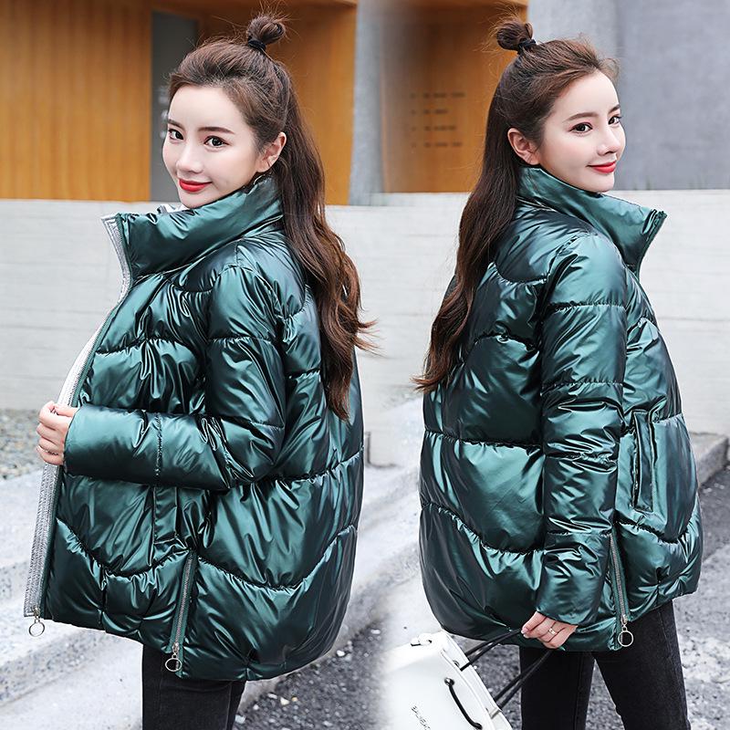 Блестящий кожаный женский новый короткий воротник-стойка, свободный хлебный костюм, модное зимнее пальто — купить товар онлайн с бесплатной доставкой по всему миру!