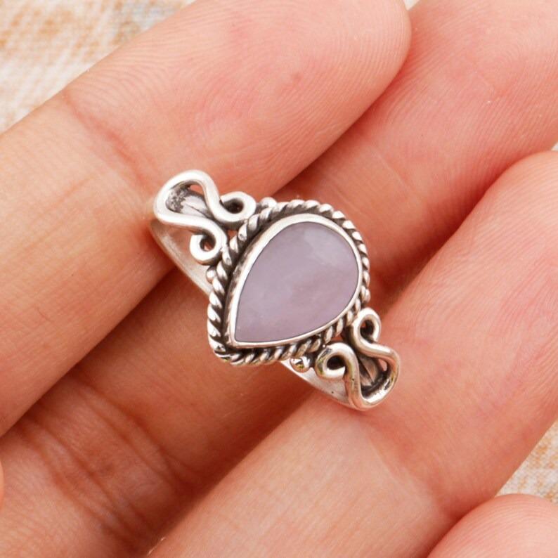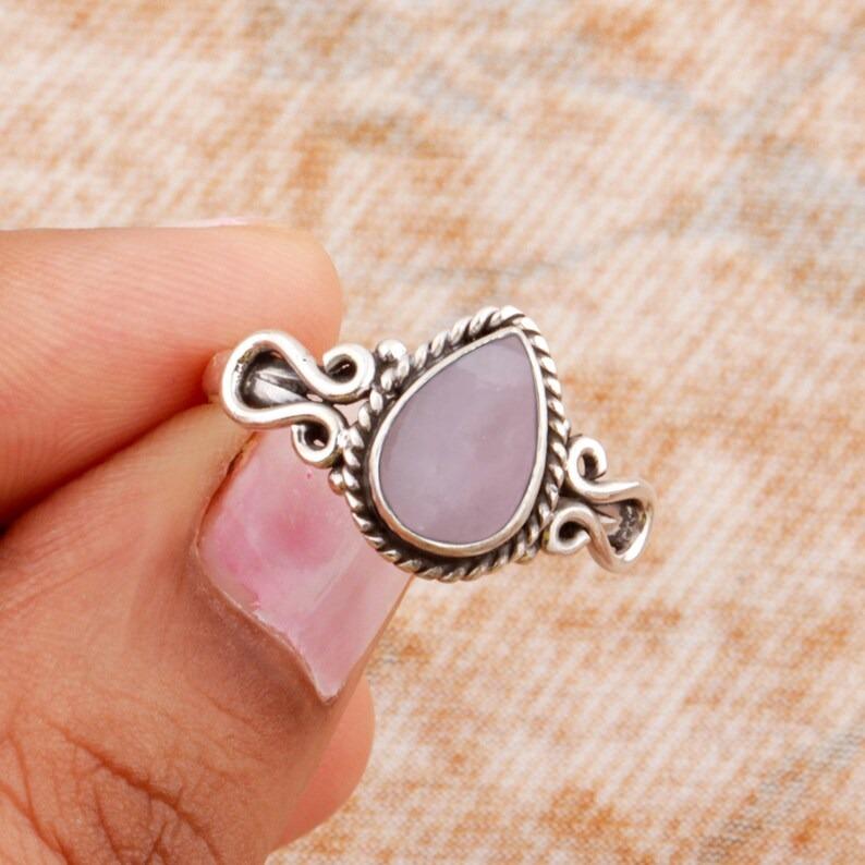 Богемное кольцо с розовым кварцем и грушей, серебряное кольцо 925 пробы, ювелирные изделия ручной работы, подарок для женщин