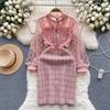 Новые весенние женские сетчатые твидовые вечерние платья в клетку с вышивкой, роскошное розовое мини-короткое платье с вышивкой бисером и бриллиантами