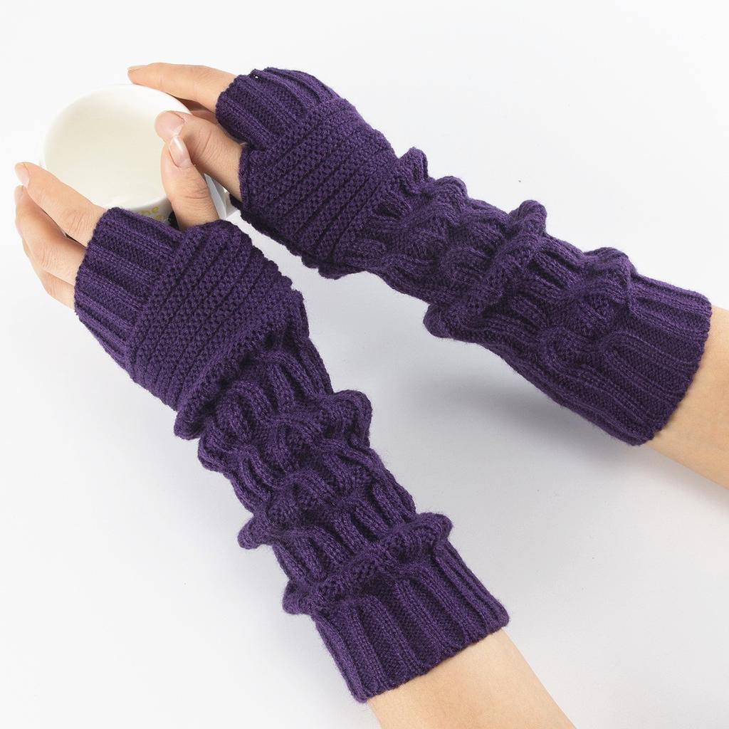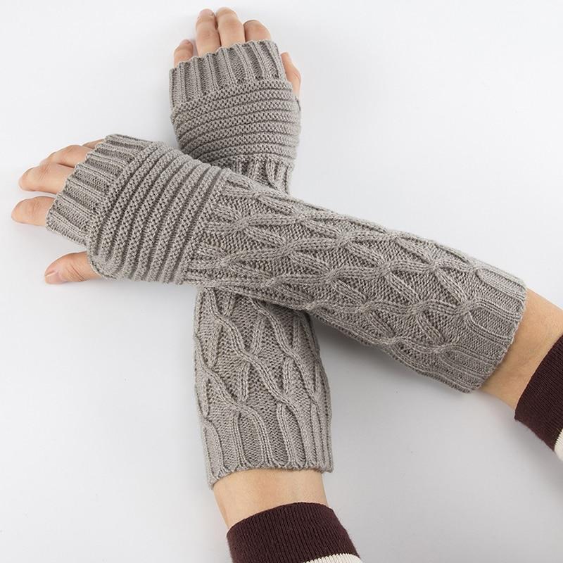 Женские вязаные длинные перчатки для рук, теплые зимние перчатки с вышивкой, перчатки без пальцев для женщин и девочек, сохраняющие тепло