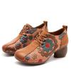 Осенние туфли-лодочки, женская обувь, лаконичная женская обувь на высоком каблуке из натуральной кожи с принтом в китайском стиле на шнуровке