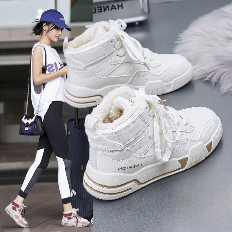 2023 зима, новые высокие кеды в корейском стиле с бархатными белыми туфлями, женские хлопковые туфли для студентов Ins, спортивная женская обувь — купить товар онлайн с бесплатной доставкой до всему миру!