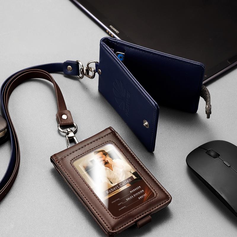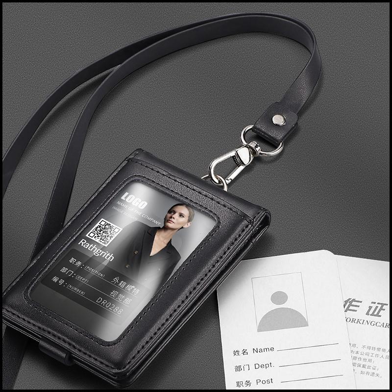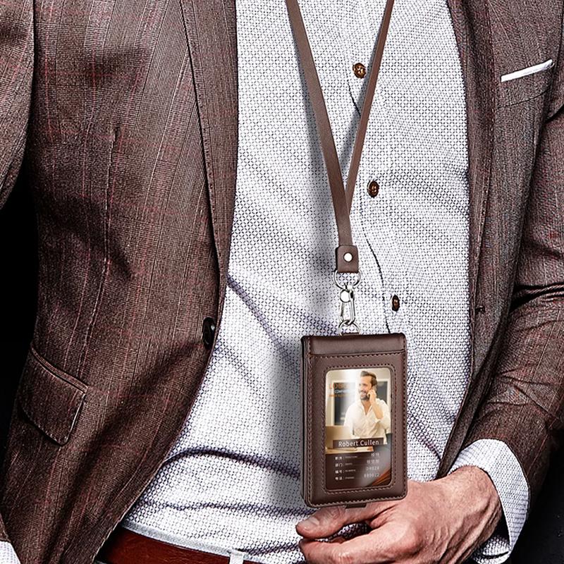 Держатель для бейджа из натуральной кожи, прозрачный чехол для удостоверения личности, рабочий сундук для сотрудников, держатели именной бирки с ремешком, деловые официальные аксессуары