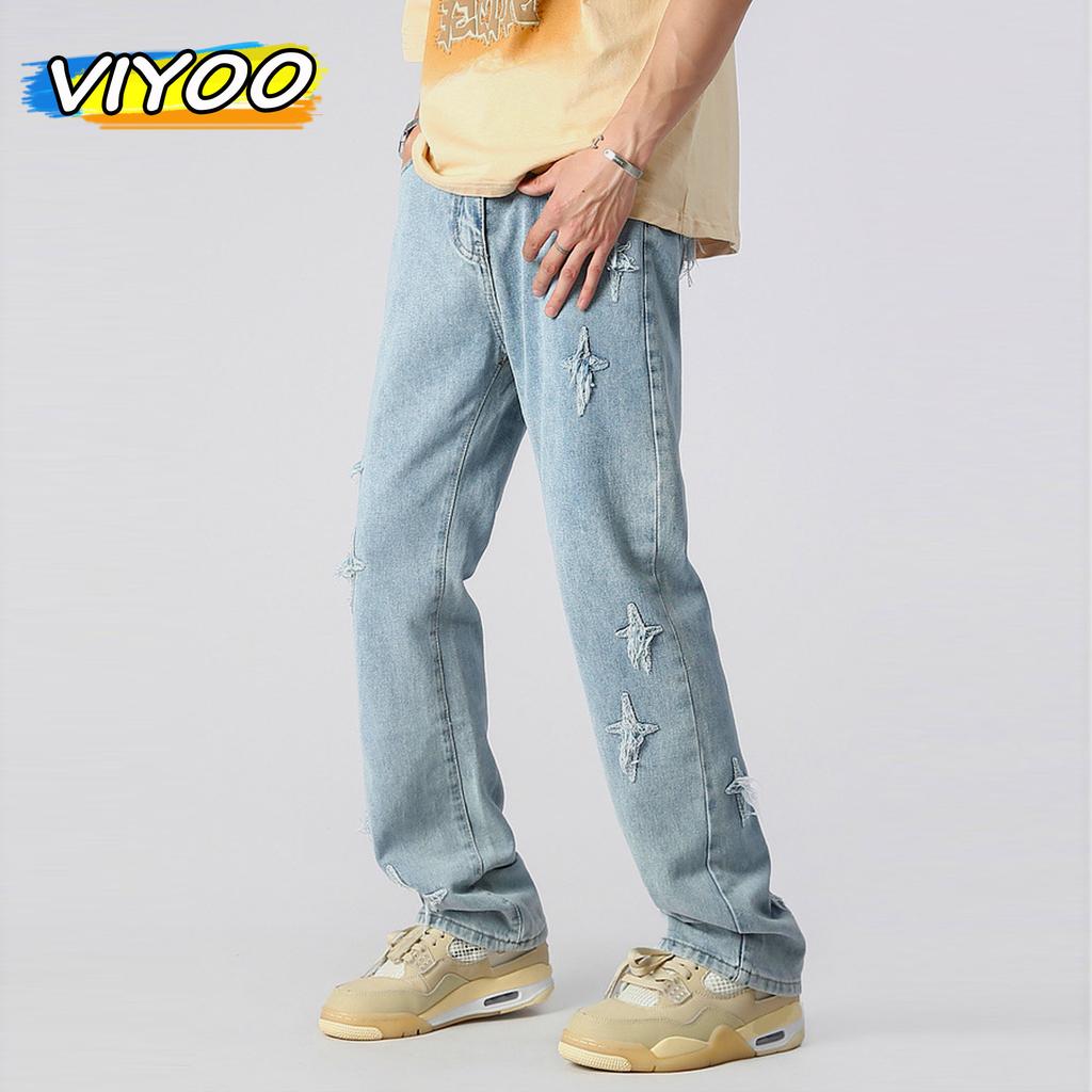 Мужские мешковатые джинсы Y2K из 80% хлопка со звездами, джинсовые повседневные расклешенные брюки, спортивные штаны для мужчин, американский стиль, 2023