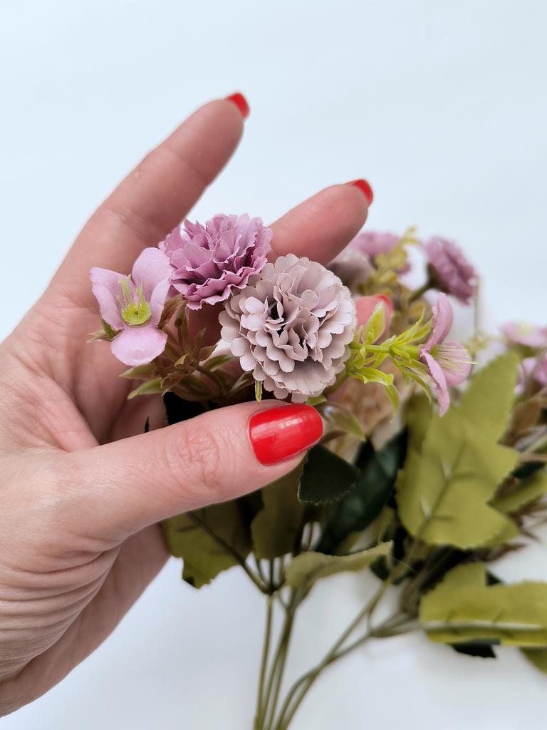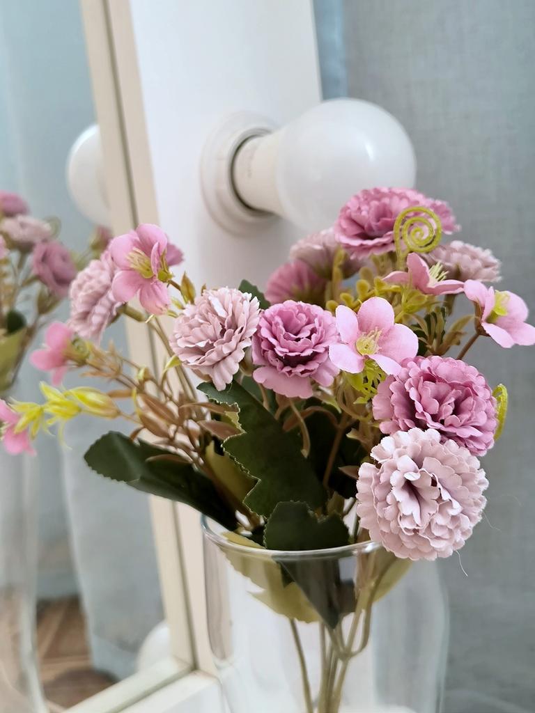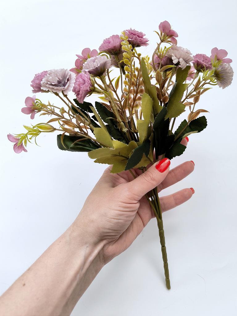 Искусственный букетик цветов ❤️ Иногда покупаю такие для предметных фото. У продавца можно выбрать букет из четырех расцветок. Пришел букет плотно уракованным в пакет. Был сильно помят, но прекрасно расправился над паром. Примерная высота букета 30 см. Диаметр головки цветка около 3,5 см. Цветы и листья тканевые, стебли - пластик. Удачных покупок ❤️ Ваша Вика 🙂