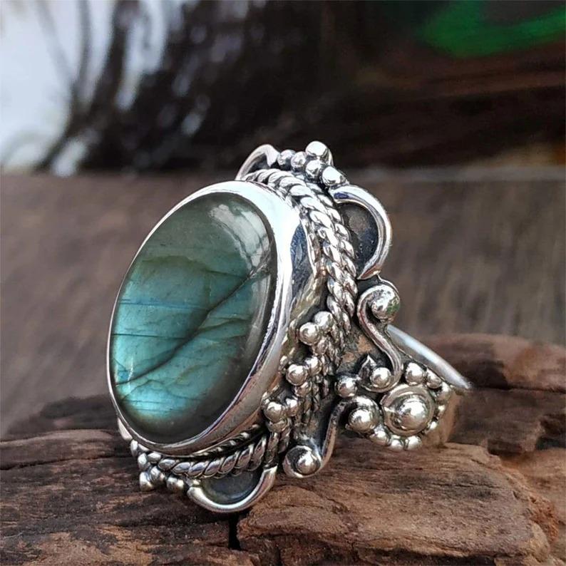 Овальное кольцо с лабрадоритом, кольцо из цельного серебра 925 пробы, кольцо ручной работы, дизайнерское кольцо, подарок для нее, кольцо с безелем