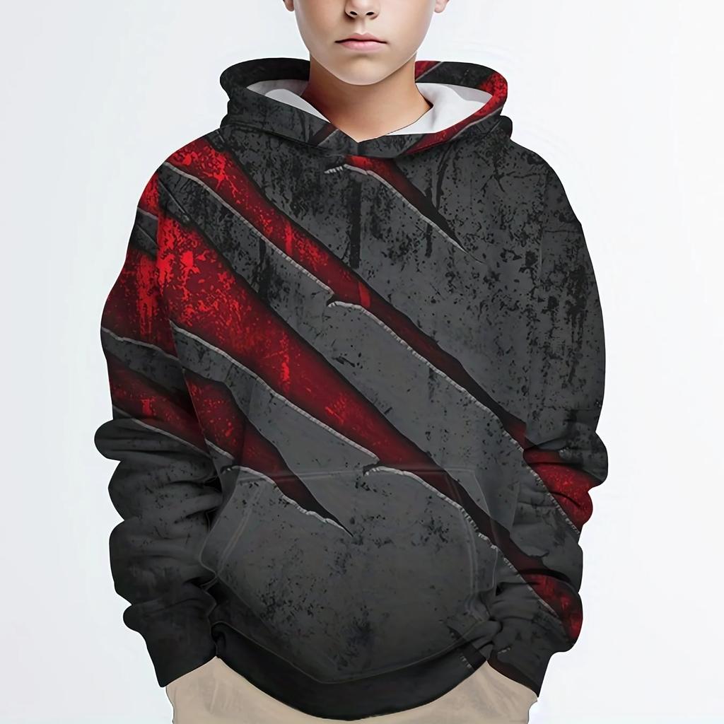 Крутые повседневные пуловеры с длинными рукавами и цифровым 3D принтом для мальчиков, свитшот для мальчиков на весну и осень, детские топы с капюшоном на открытом воздухе