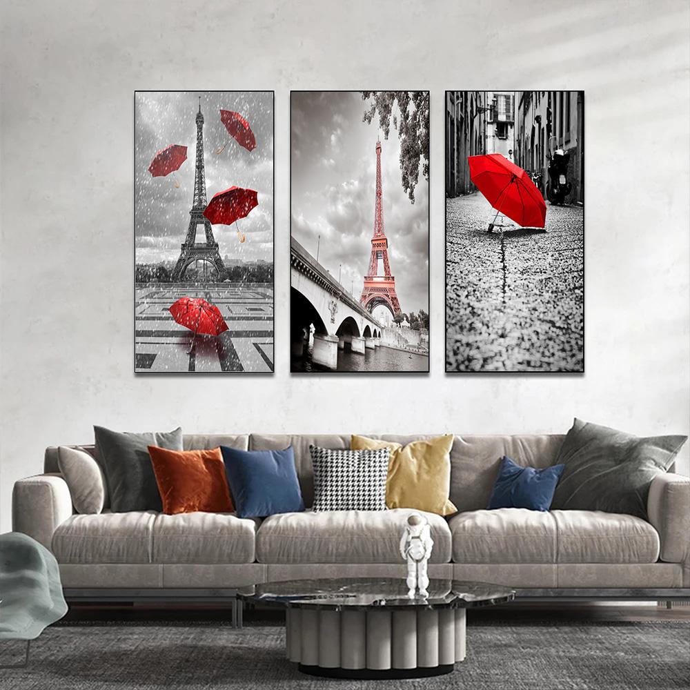Черно-белый пейзаж, красный зонтик, HD холст, картина для дома, современные подарки, настенные плакаты, принты для гостиной, спальни, офиса, Эйфелева башня, винтажный декор