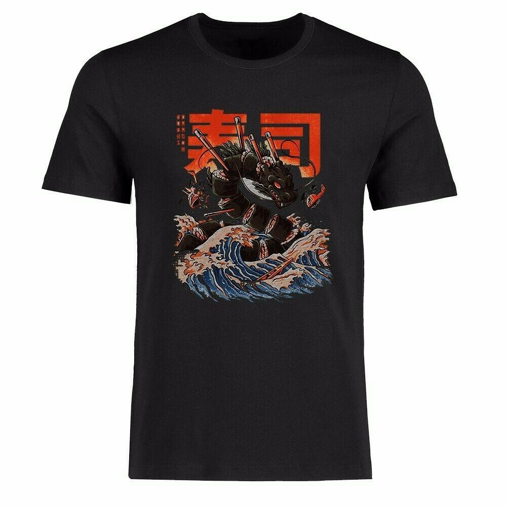 Мужская забавная футболка унисекс с коротким рукавом и рисунком японского великого суши-дракона
