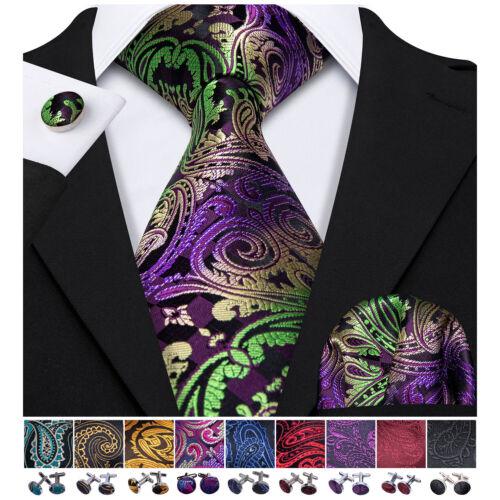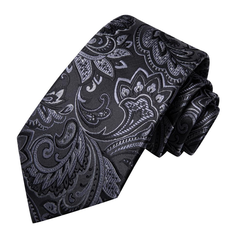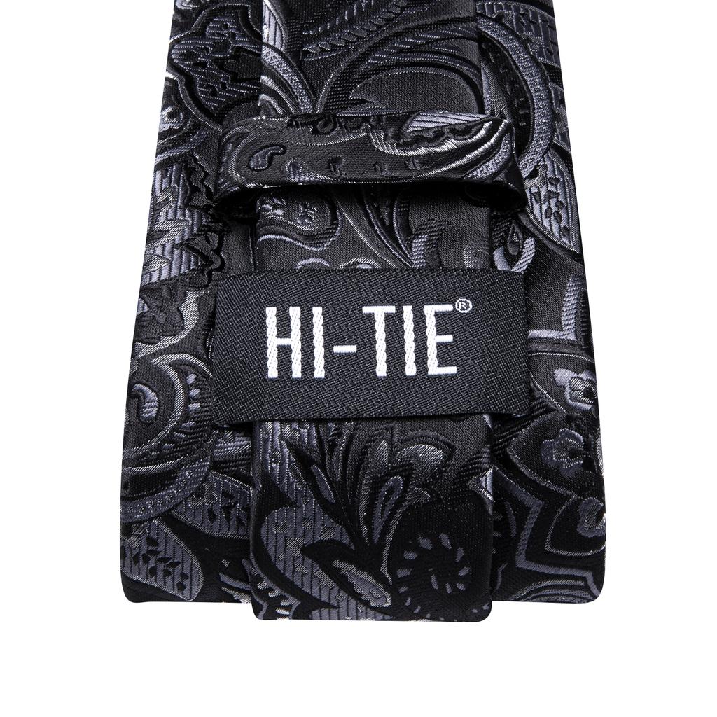 Hi-Tie Темно-черные, белые цветы, жаккардовые галстуки с узором пейсли, мужской шелковый галстук, карманные квадратные запонки, вечерние