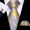 Hi-Tie Синий золотой полосатый жаккардовый мужской шелковый галстук, классический галстук, запонка, носовой платок