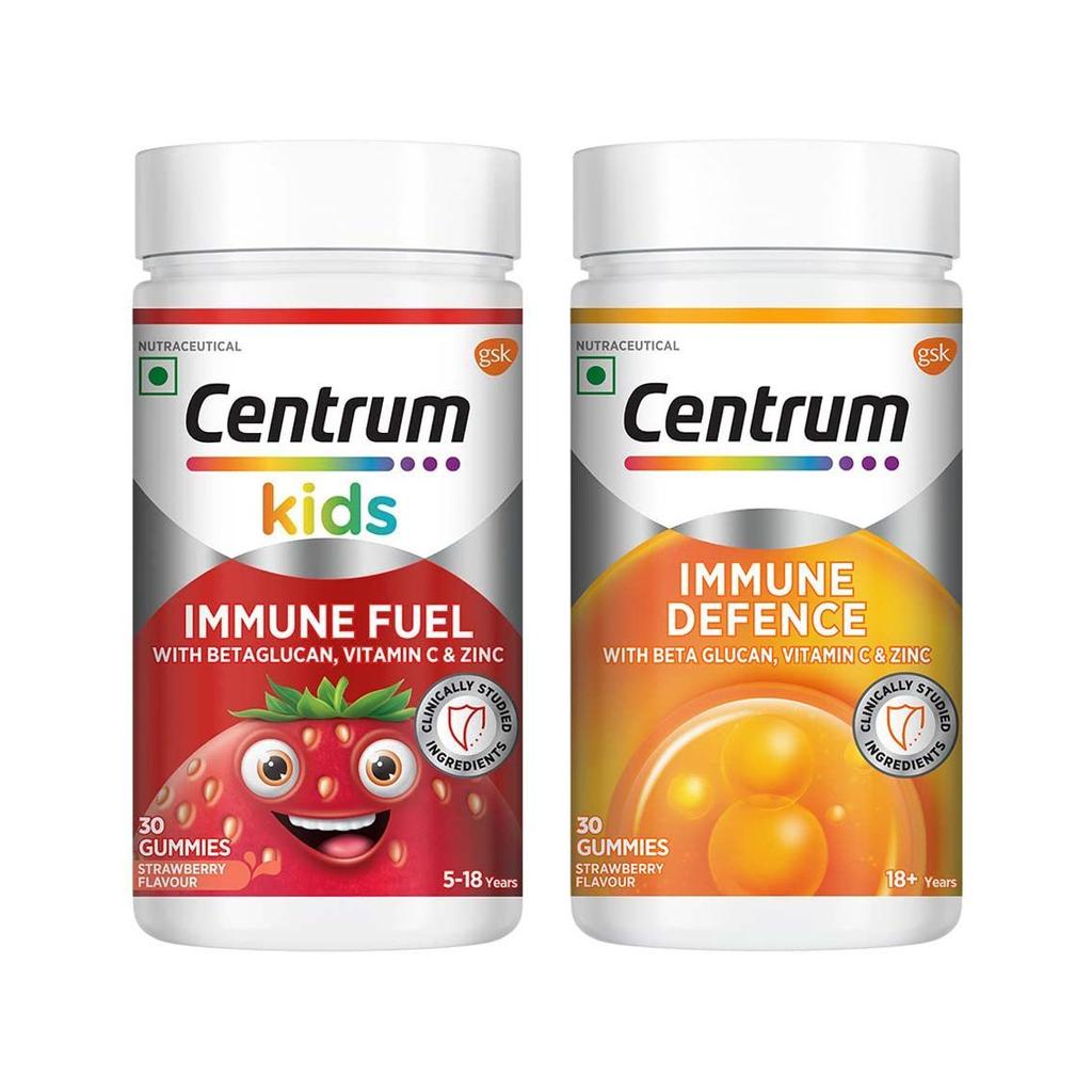 Набор жевательных конфет для иммунной защиты детей и взрослых (30 шт + 30 шт), Kids Immune Fuel Gummies & Immune Defence Gummies Set, Centrum