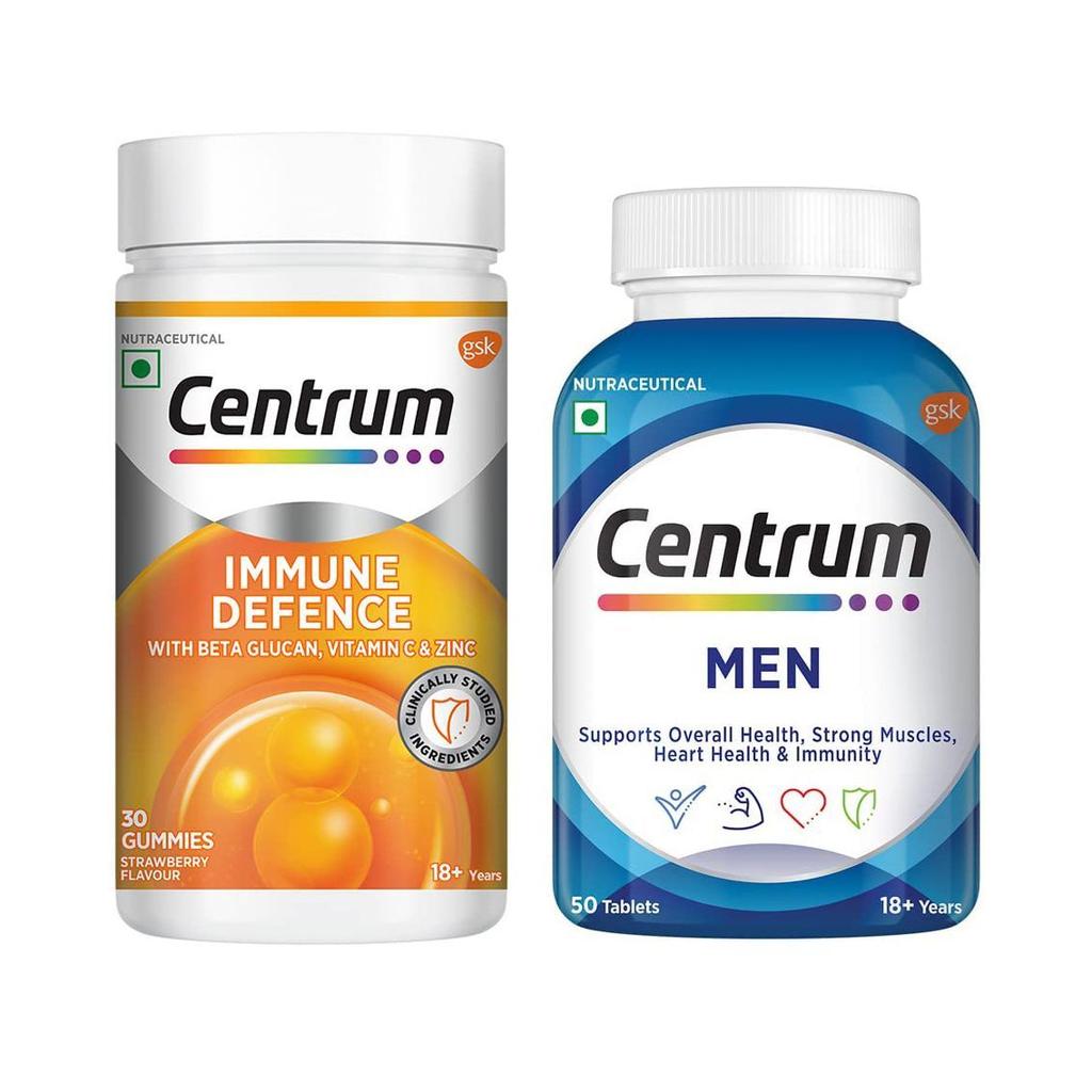 Набор: жевательные конфеты для иммунной защиты и добавка для мужчин (30 шт + 50 таб), Immune Defence Gummies & Men Set, Centrum