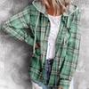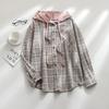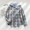 Весенне-осенняя женская рубашка, модная повседневная рубашка в клетку с капюшоном и цветными блоками