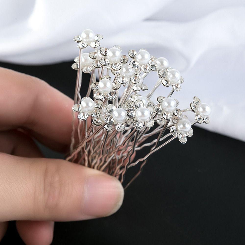 Женская заколка с цирконием U-образная жемчужная заколка со стразами, заколка для волос, свадебные украшения для волос, свадебные заколки для волос