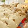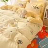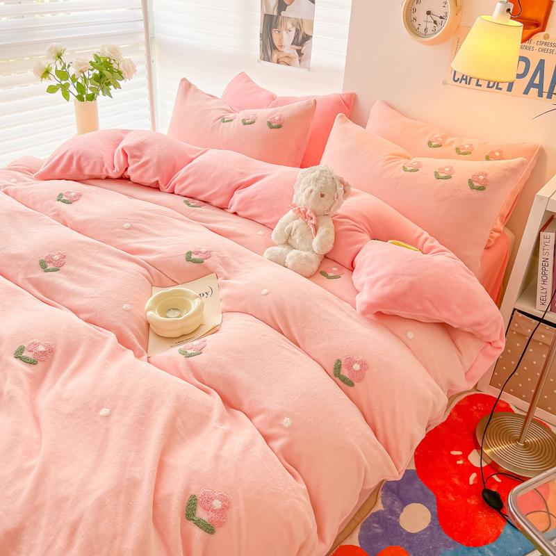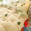 Небольшой свежий зимний утолщенный молочный бархатный комплект из четырех предметов Коралловый бархат с вышивкой, теплый двусторонний бархатный пододеяльник, комплект из трех предметов