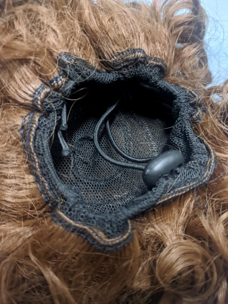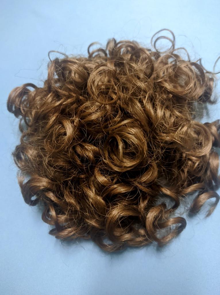 Ещё один пучок-кудряшка. Отличается от предыдущего только цветом. Аксессуар крепится на волосы при помощи проволочных крючков. Есть утяжка, резинка с фиксатором. Если расправить локон-кудряшку, его длина составит 20 см. Интересный шиньон, рекормендую!