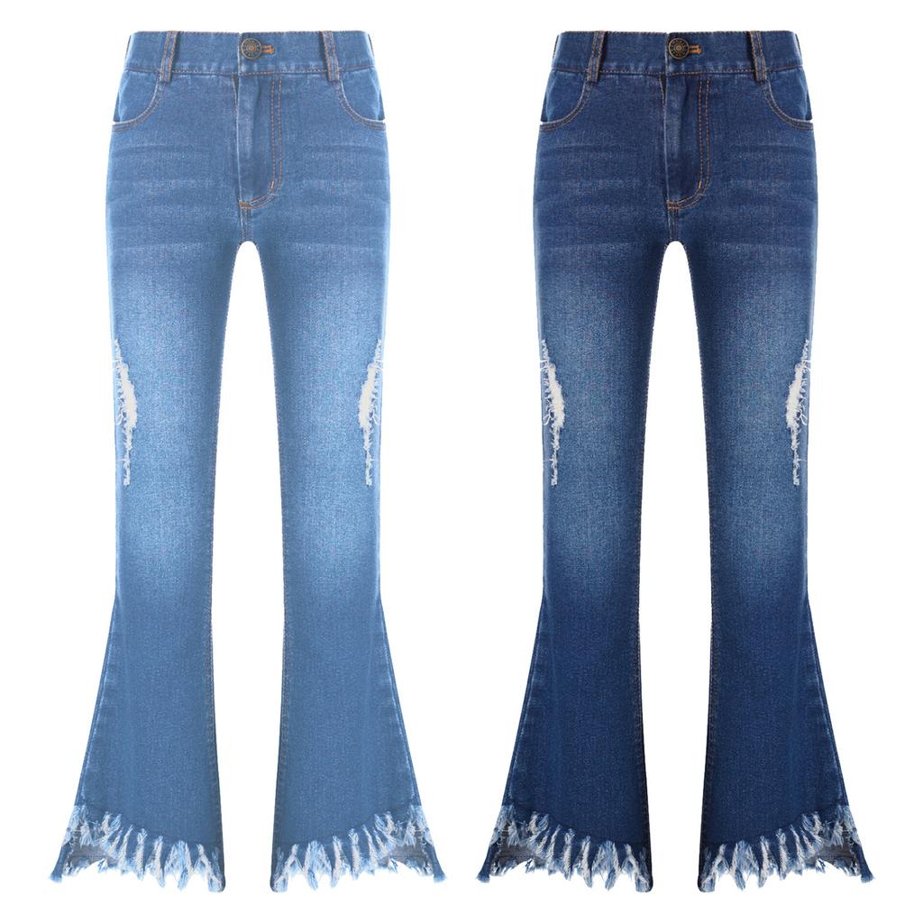 Джинсы для девочек, длинные джинсовые брюки с рваными краями, брюки для школьной повседневной одежды