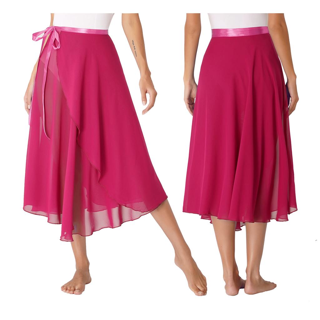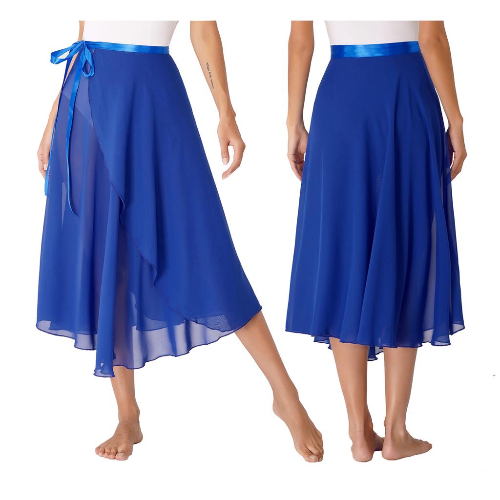 Женская профессиональная юбка с запахом для балета и танцев, шифоновая асимметричная юбка для взрослых, аксессуары для обучения современным танцам