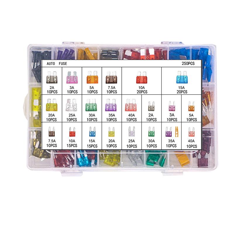 250 шт., набор автомобильных предохранителей, набор страховок для грузовиков, набор предохранителей типа лезвия для автомобиля/фургона/грузовика/мотоцикла/лодки