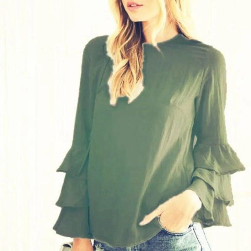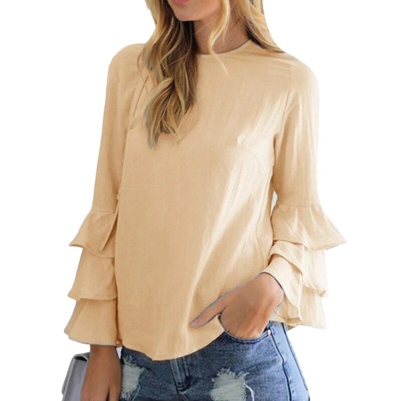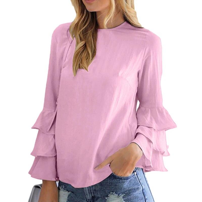 Элегантная повседневная женская блузка с оборками и круглым вырезом, модные винтажные белые рубашки, свободные топы с длинными рукавами, 24469