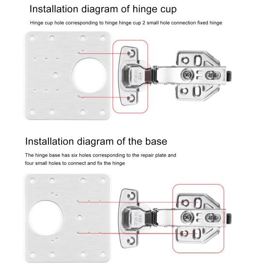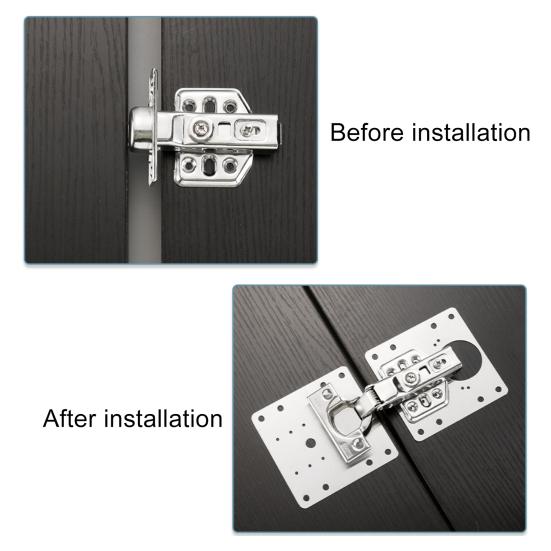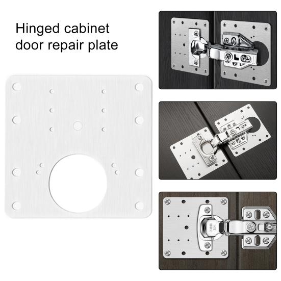 Конструкция с несколькими отверстиями: В отличие от других аналогичных продуктов, наша ремонтная пластина для петель имеет несколько отверстий, которые идеально подходят для большинства петель шкафа.. Они могут соединить навесные дверные панели и помочь вам отремонтировать поврежденный шкаф.