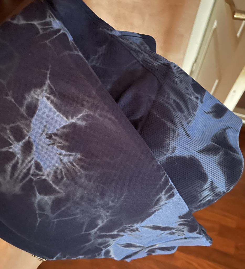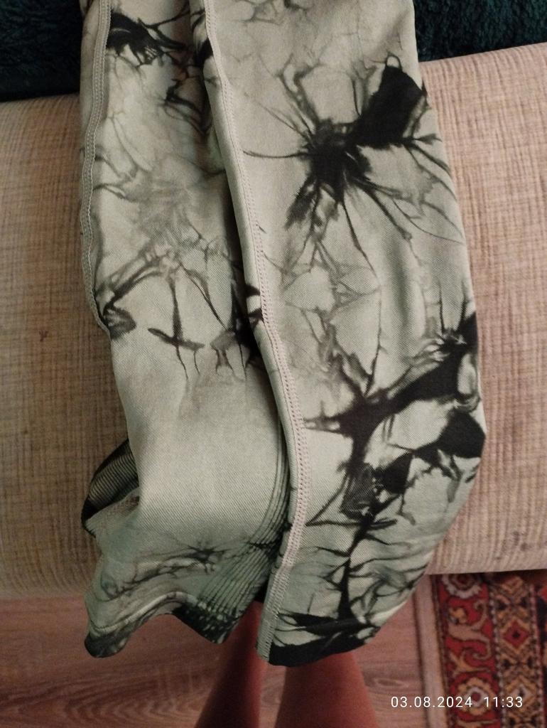 По размеру на бедра 101 см размер М садится хорошо, ткань хорошая, как и должна быть в лосинах тай-дай, но цвет гораздо тусклее, чем на фото. Цветом очень расстроена. Дополняю отзыв спустя время носки. Они сползают!!! Не держатся на талии! Хотя размер мой! В талии широко! У меня такие же другого цвета есть, в таком же размере М, но куплены в другом месте - идеальные. А эти носить неудобно, особенно, когда занимаешься в зале.