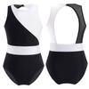 Детские сетчатые купальники без рукавов с круглым вырезом и открытой спиной для девочек контрастного цвета, танцевальные гимнастические купальники